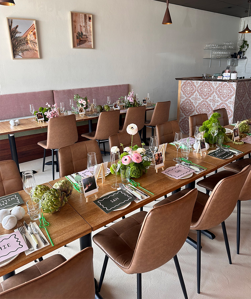 They’ve partnered with local award-winning distillery Amber Lane, as well as Upstairs Wine, to curate an extensive beverage menu, with bar snacks also available. Think dark wood panelling, velvet upholstery, and chandeliers inside this unique space.