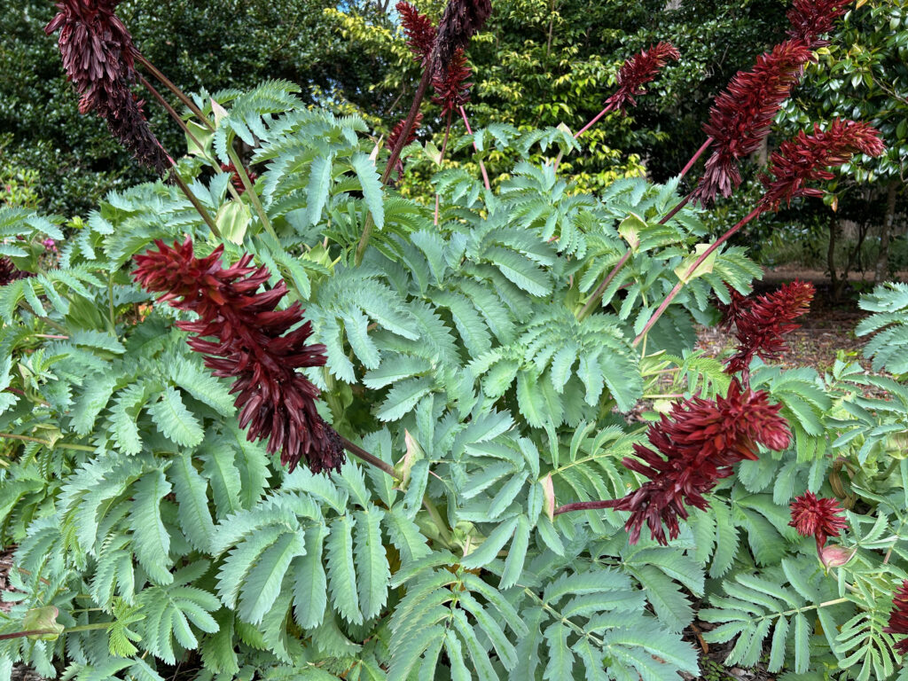 Close to the house is a willowy lemon-scented gum and when Janis mows the lawn around the tree, she says the fallen leaves stir up the most beautiful lemony aroma that makes mowing a joy. Nearby, a tupelo tree survived transplanting four years ago when it inadvertently lost all the earth around its roots. It has survived and thrives, giving Susan and Janis vibrant yellow and red foliage in autumn.