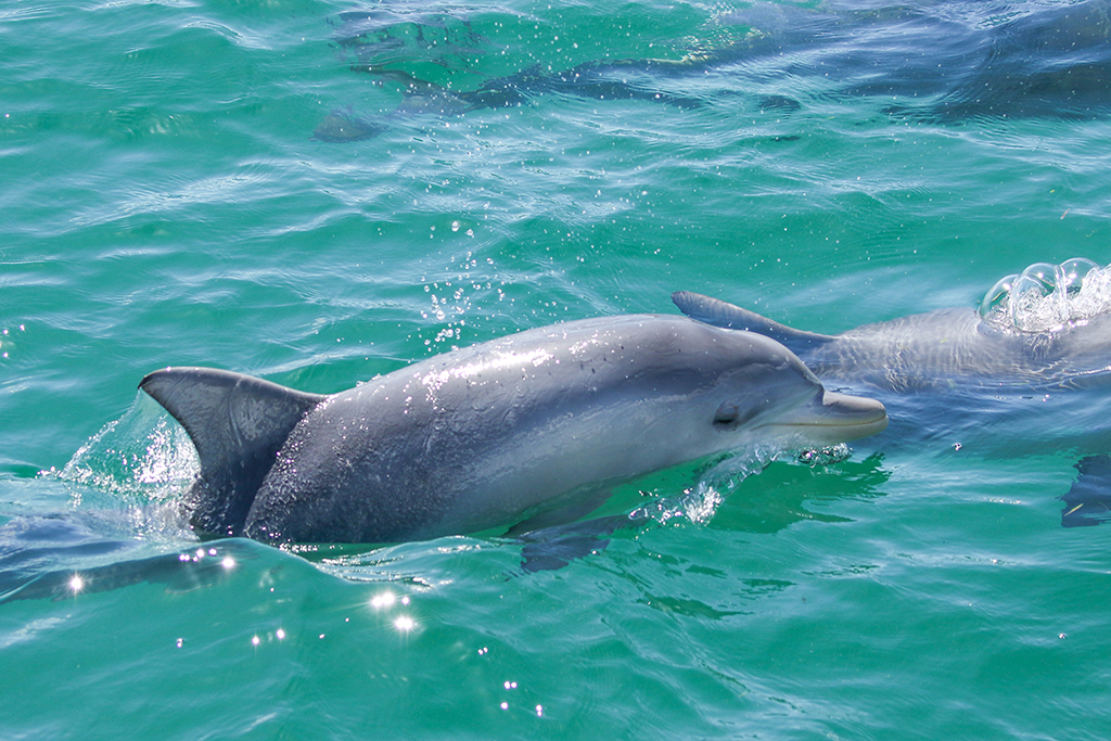 You may see two main species of dolphin: the playful common dolphins that roam in huge pods offshore, and the bottlenose dolphins found in smaller pods around our coastline, bays and estuaries.