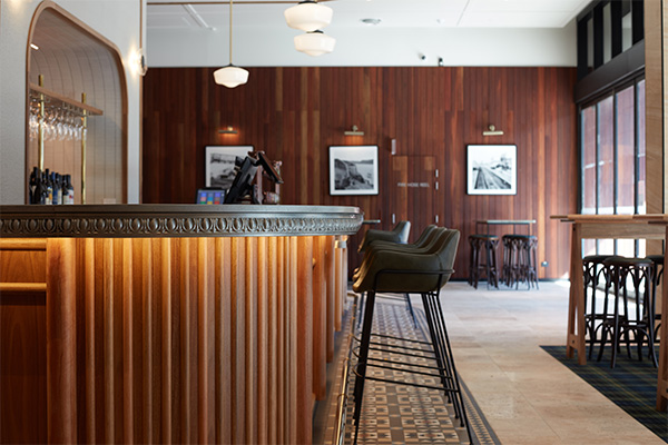 Located directly across from Gosford Railway Station, this hotel is a nod to the establishments that sprang up across the country during the railway boom of the 19th century. Owned by The John Singleton Group, the space was originally The Bon Pavilion but was reimagined in 2022. The elegant hotel design boasts timber features, patterned tiles and decorative historic photographs. With a steakhouse menu, you can choose from premium cuts of meat, as well as beloved dishes with bangers and mash, steak and Guinness pie and beer battered fish. On Sundays, the Signature Railway Roast is a homey option.