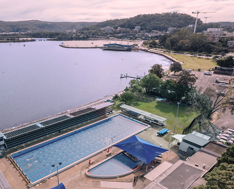 Its origins trace back to the ocean baths that once existed near the current boat ramp, reflecting the Coast’s long-standing tradition of water-based leisure. The complex features a heated 50-metre outdoor pool, a toddlers’ wading pool and heated indoor pools. The changerooms were recently renovated, with accessible changerooms added. As an integral part of the Gosford waterfront, Gosford Olympic Pool may well see further changes by the NSW State Government when the Gosford Waterfront Redevelopment plans are announced in the future.