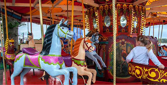 restored. Today, you can still ride the carousel, enjoying the beautifully nostalgic wooden horses and carriages.
