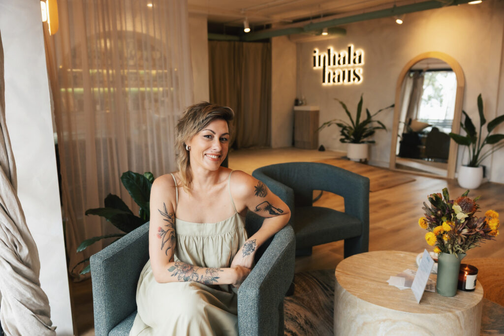 Significantly, it’s never ‘just a haircut’ at Inhala Haus. Each visit is a one-on-one sanctuary experience that lies in the name: ‘Inhala’ is Romanian for ‘breathe in’, and ‘Haus’ means ‘house’ in German – essentially, The Breath House. It’s no coincidence therefore that Leah is a Master Breathwork Facilitator and trained in facial fascia release and sculpting, with her relaxation breathwork subtly woven through most services.